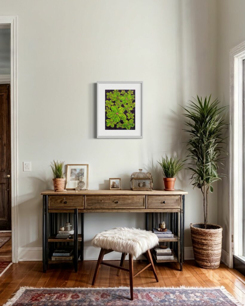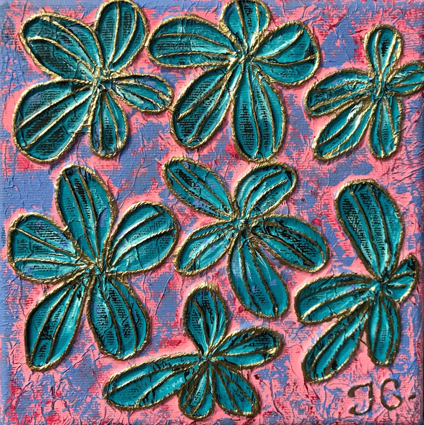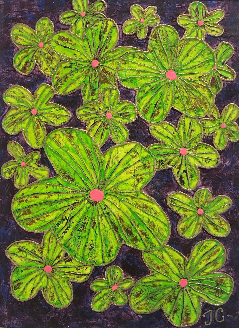 « Cosmic Flowers » est une série d’oeuvres originales réalisées en 2021 à partir de techniques mixtes sur papier Canson 300 g/m². Les oeuvres sont encadrées avec un cadre blanc de 21 x 30 cm avec un passe-partout dont l’oeuvre au centre mesure 13 x 18 cm.