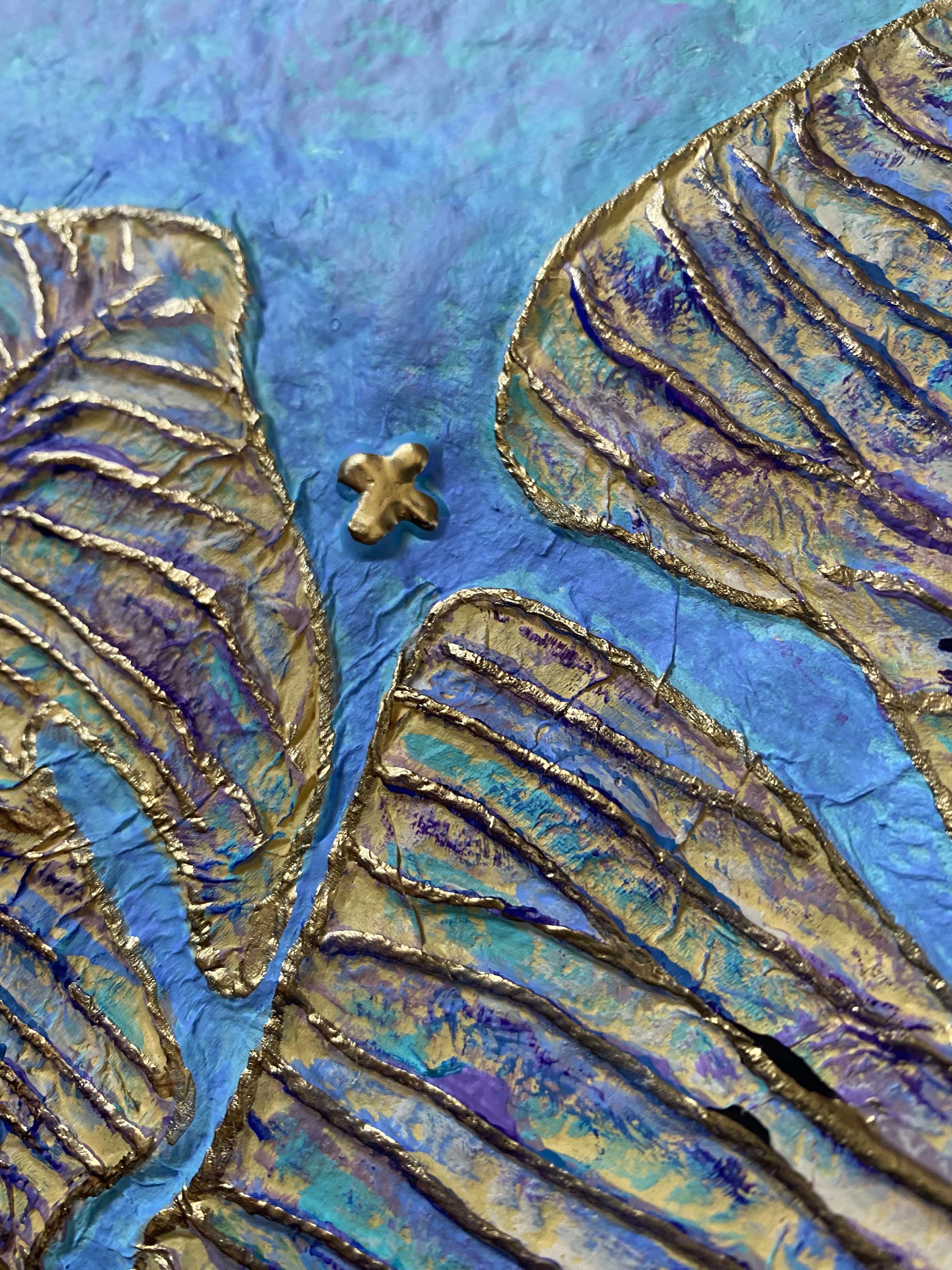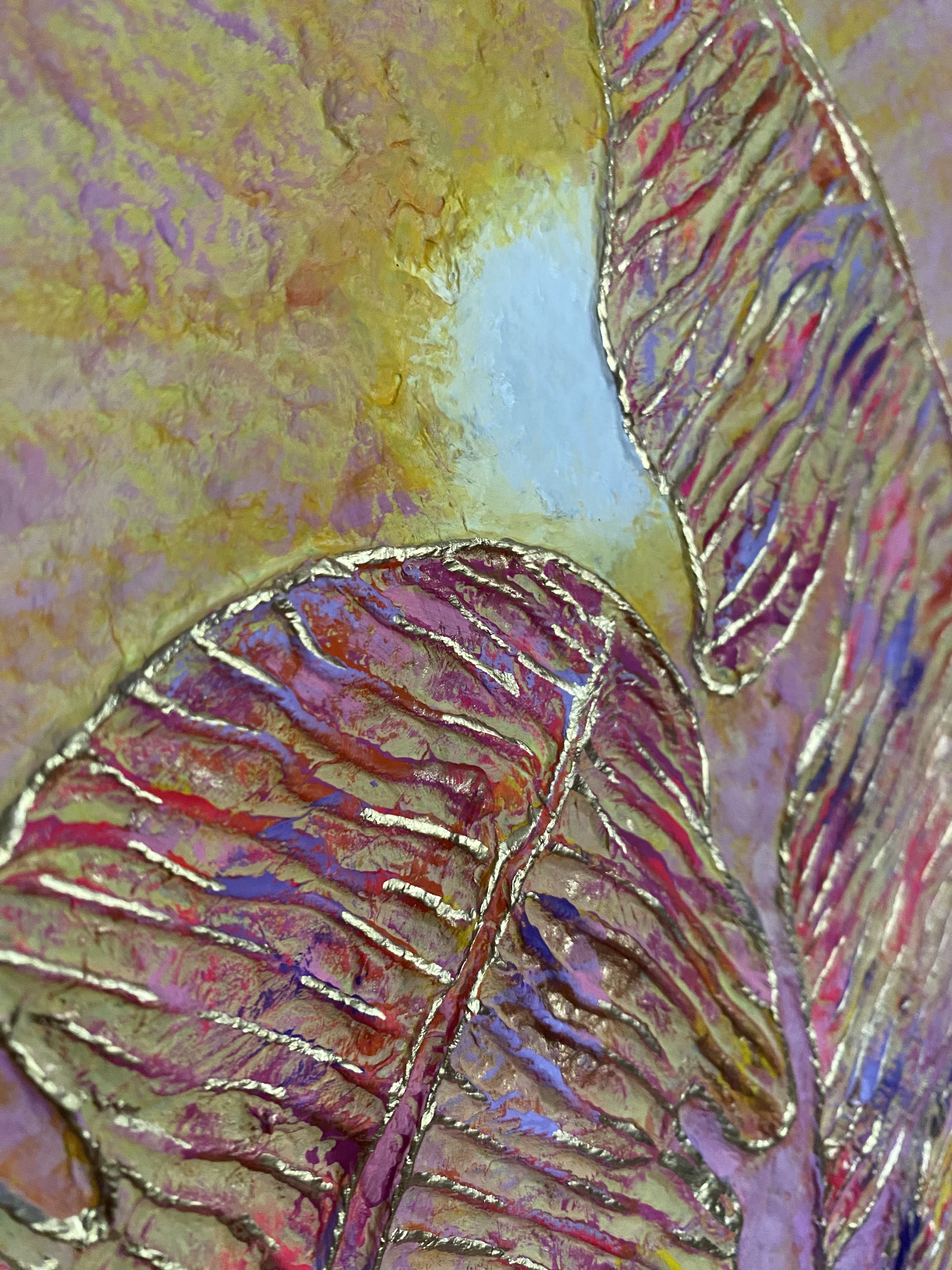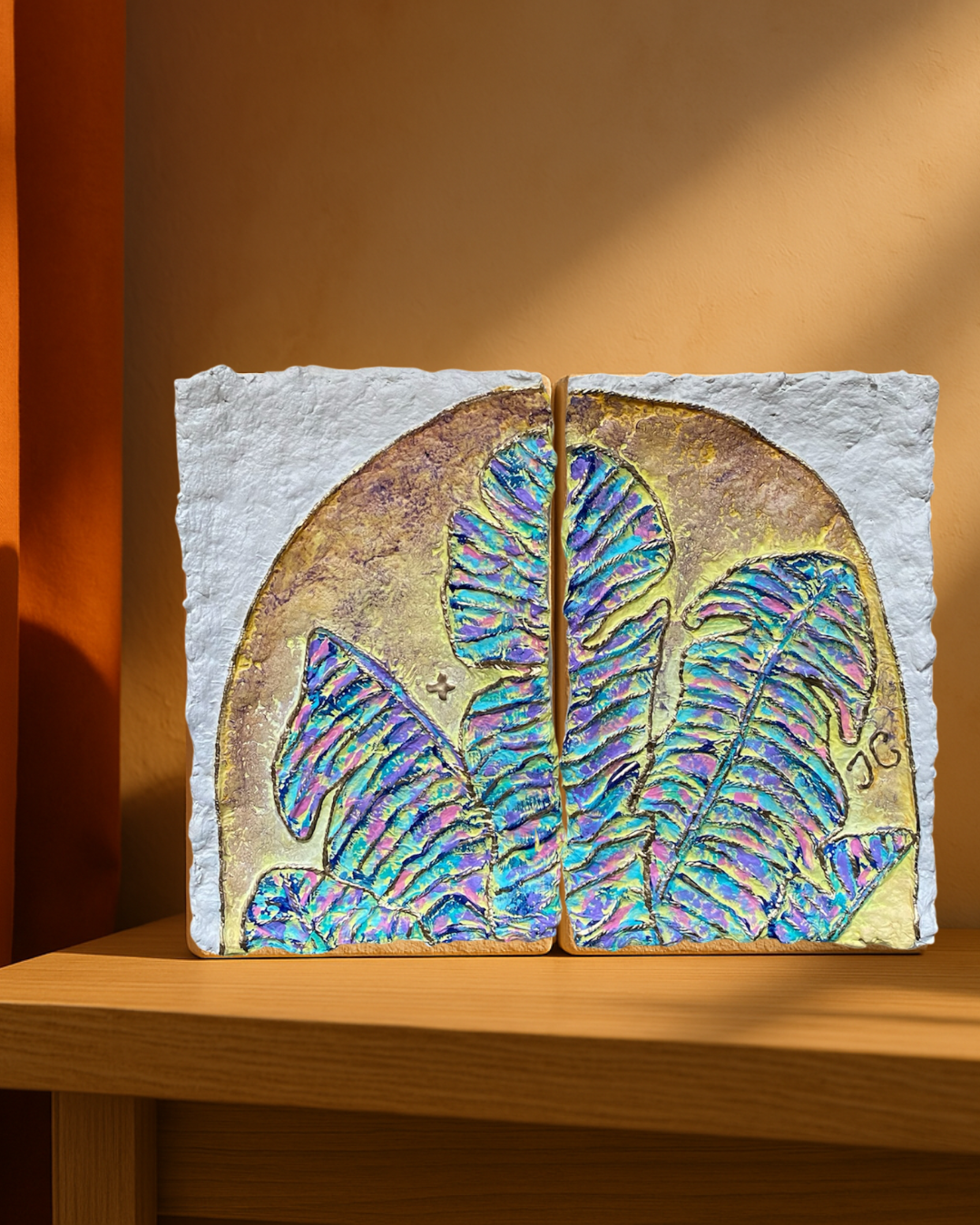 L’arche, présente dans plusieurs œuvres, est comme une porte silencieuse — un seuil entre les mondes : du dedans et du dehors, du visible et de l’invisible. Elle incarne un passage, une invitation à franchir le mystère qui relie notre monde intérieur à celui de la nature.