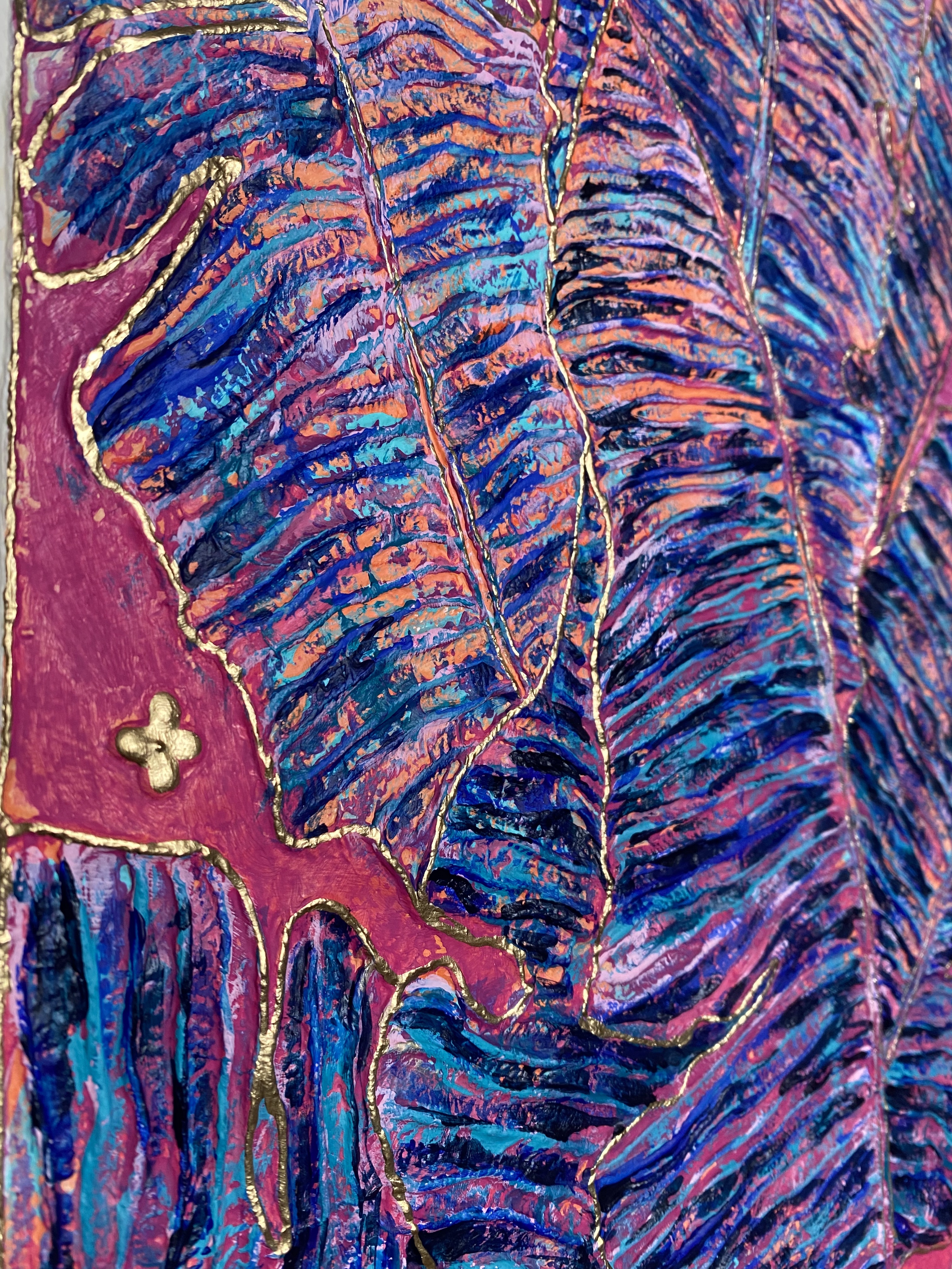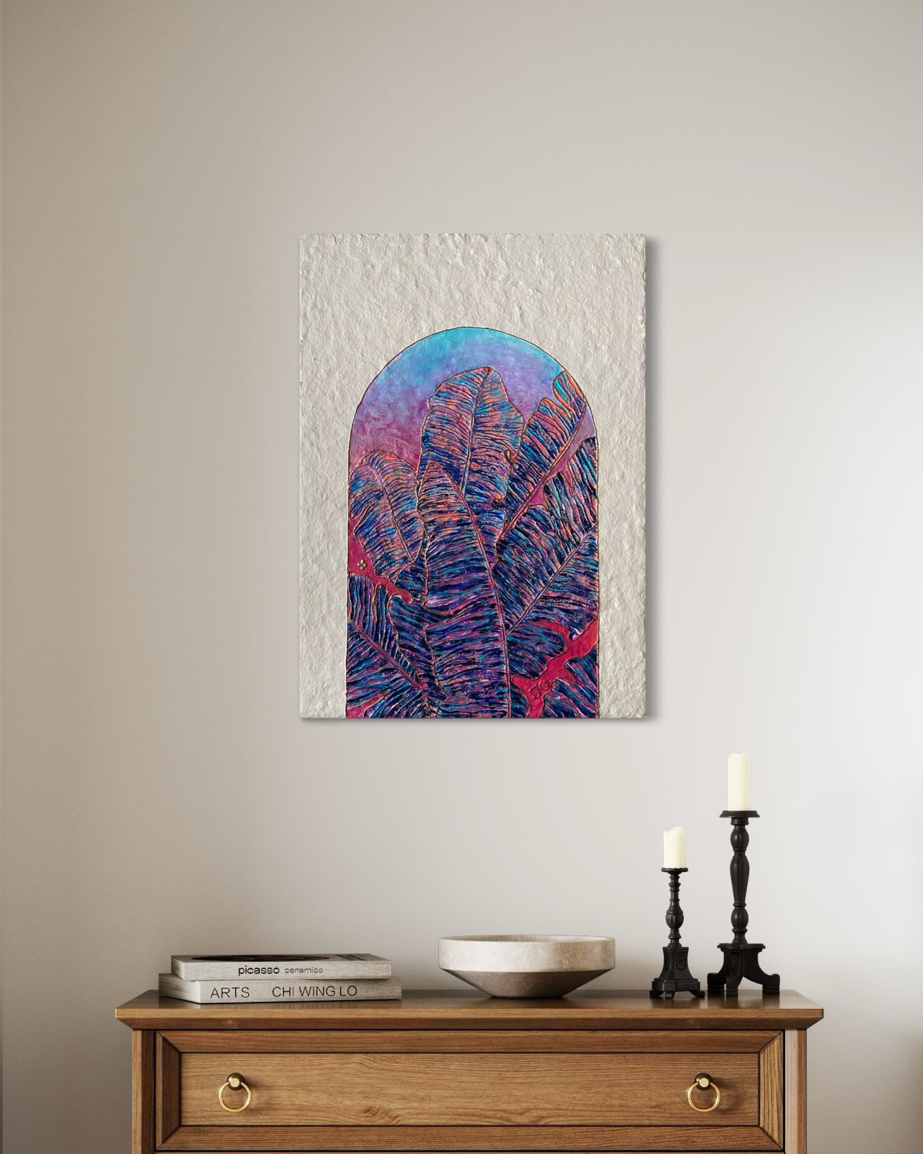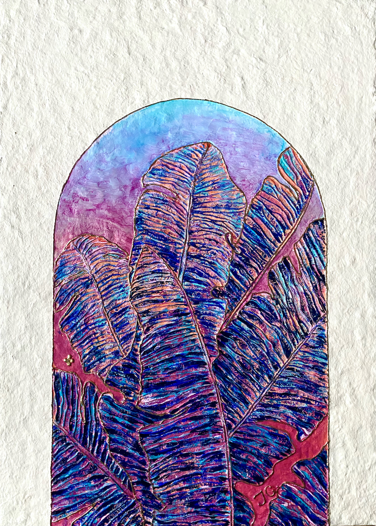 L’arche, présente dans plusieurs œuvres, est comme une porte silencieuse — un seuil entre les mondes : du dedans et du dehors, du visible et de l’invisible. Elle incarne un passage, une invitation à franchir le mystère qui relie notre monde intérieur à celui de la nature.