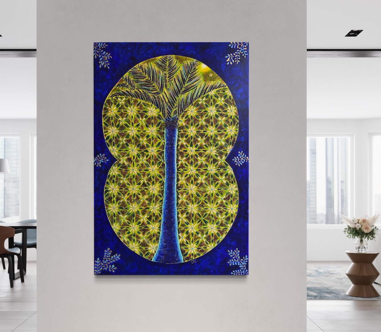 Pour cette exposition collective, Tiphanie Canada a choisi de présenter son grand format « Le Palmier du Désert », issu de sa série « Les Choses Invisibles ». Cette œuvre symbolique, mêlant matières, reliefs et lumière, a capté l’attention des visiteurs par sa profondeur et sa dimension spirituelle.