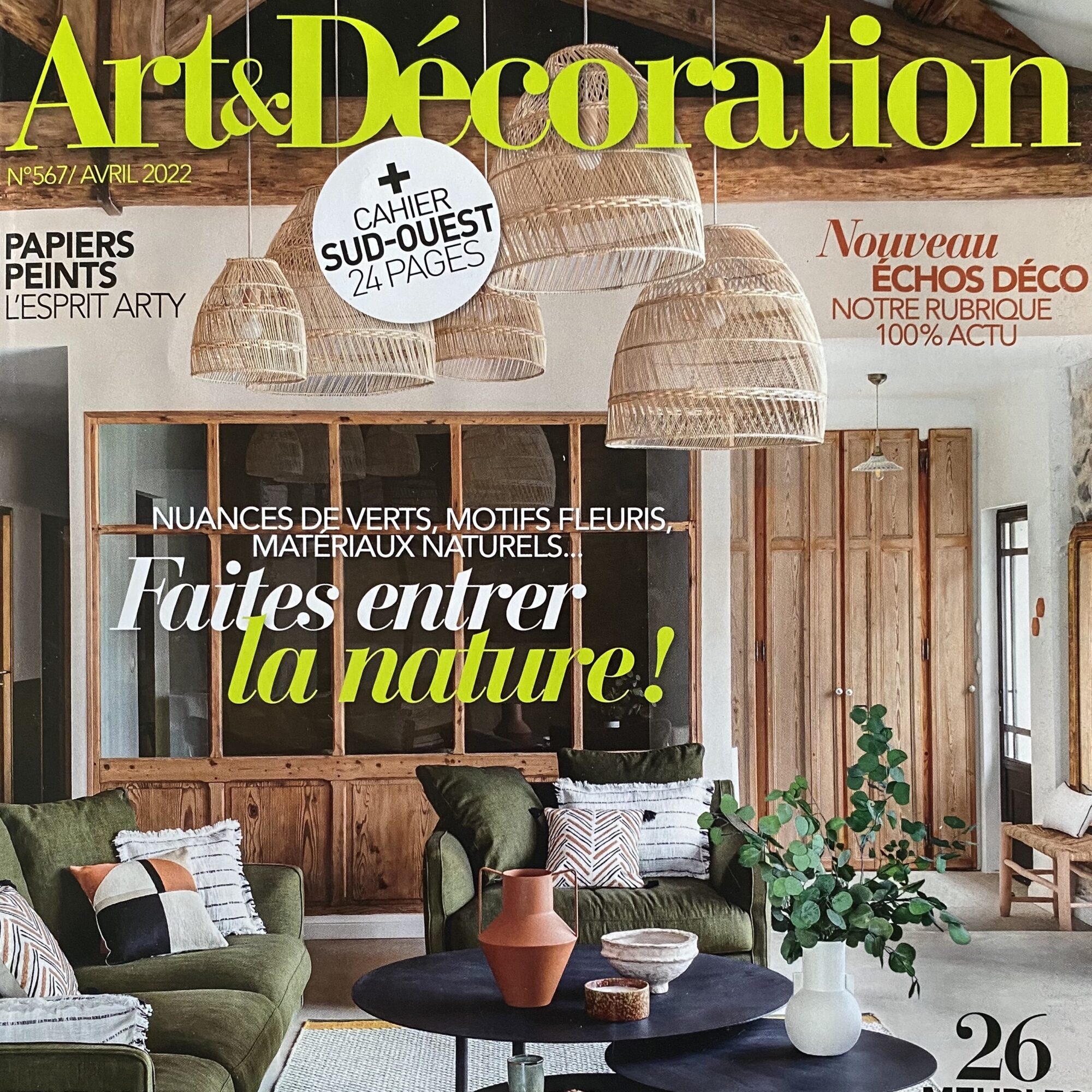 Art & Décoration, magazine de référence dans l’univers de la décoration et de l’art de vivre, a consacré un article à Tiphanie Canada dans son cahier spécial Sud-Ouest. Cette parution est une véritable reconnaissance de son travail artistique et une belle vitrine pour son univers unique.