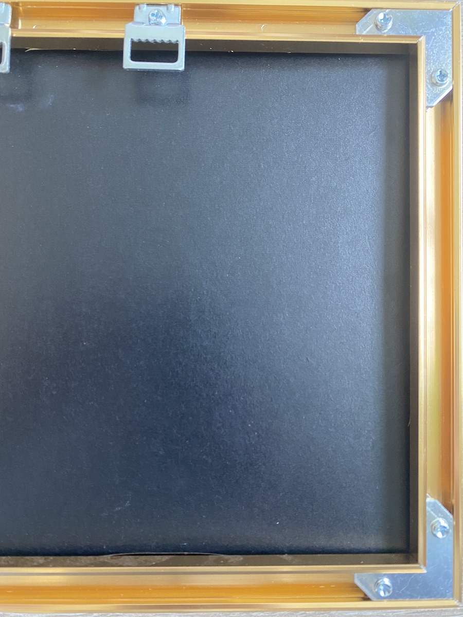 Cette oeuvre est prête à être accrochée au mur. Le châssis métallique est équipée d’un système d’accroches au dos.